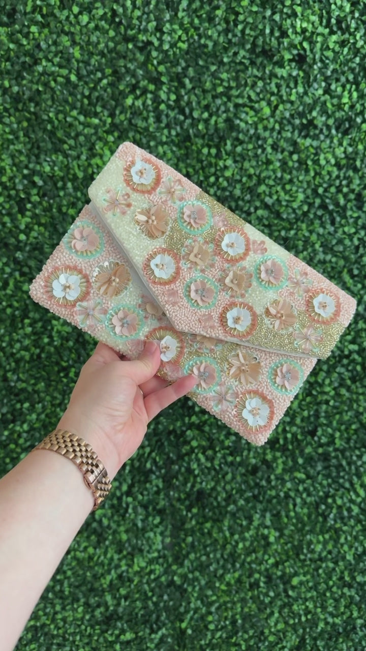 Elegant, sophisticated, with the daintiest pastel hues--but this beaded clutch is anything but basic. She's a statement piece that's begging to be taken to brunches, showers, weddings and more!
